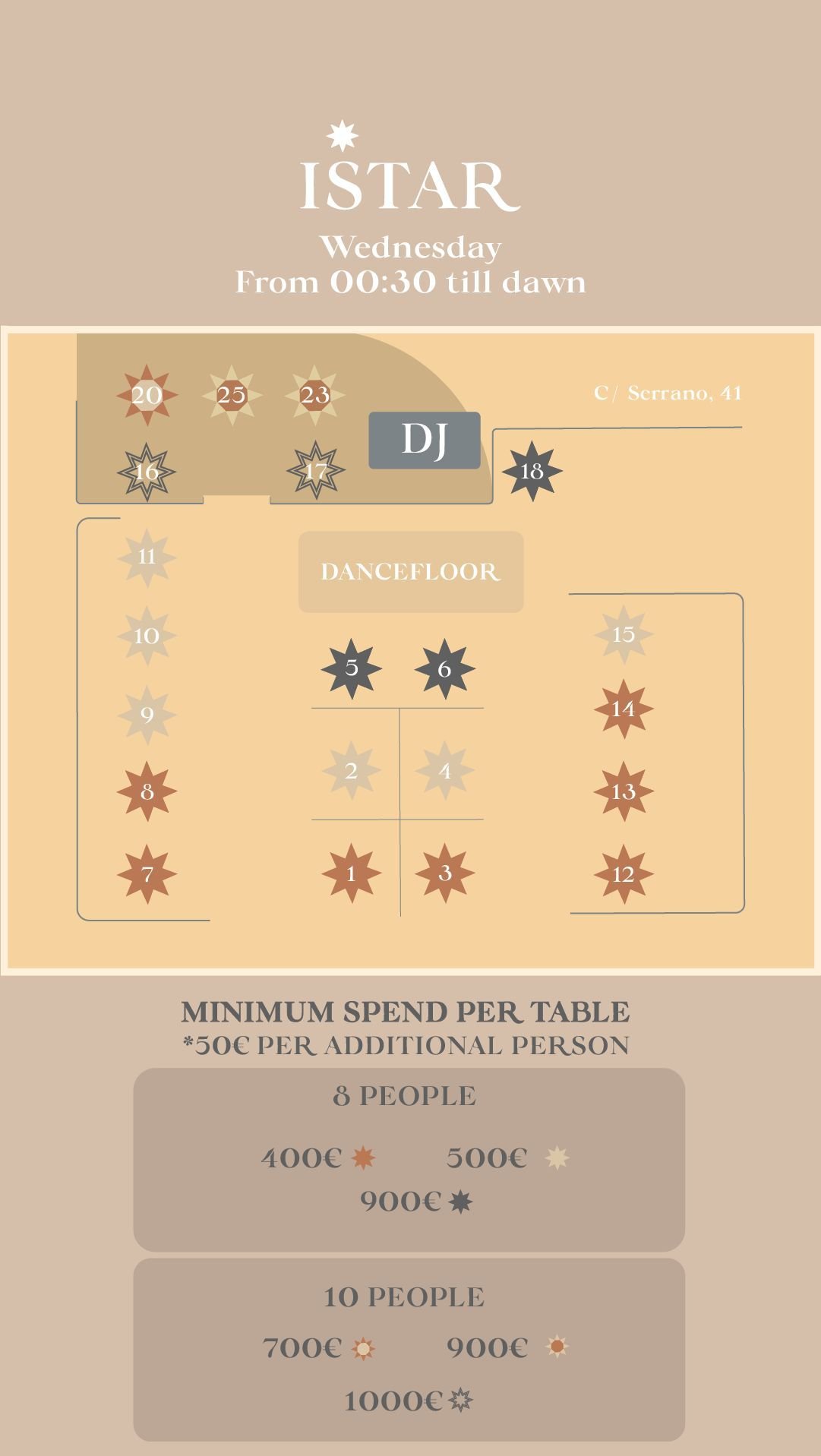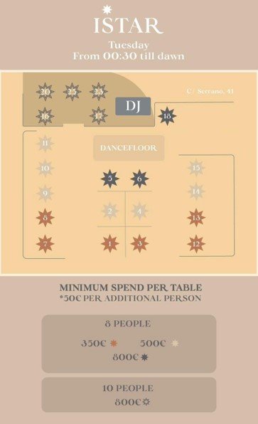 Uno de los clubes más elegantes y exóticos de la capital. Istar Club , situado en una de las zonas con mayor prestigio de Madrid como lo es el Barrio de Salamanca, está muy cerca del Museo del Prado, el Reina Sofía y el Thyssen. Luce junto a las tiendas y restaurantes de lujo que conforman la ya conocida como la Milla de Oro, lo que anticipa que nos encontramos ante una sala de público selecto en un ambiente de élite y lleno de glamour.